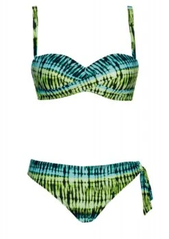 Knallgelber Untergrund mit einem Grafikdruck mit leuchtendem Orange, Flieder und Dunkelgrün. Knallige Neonfarben ergeben die frische und farbenfrohe Serie „SUNNY KISS“. Bikini mit Softschalen und Formbügel. Die Träger sind verstellbar und aushakbar. Hüfthose mit schmaler Seitenhöhe.