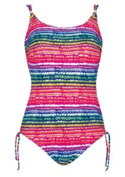 Wie ein Aquarell auf Ihrer Haut! Blüten und Blätter in Aquarelloptik auf einem strahlenden Blau. Ein wunderschöner und romanischer Print. Bei diesem Bandeau-Badekleid mit schönem Wickeldetail fällt einem die raffinierte Schnittführung sofort ins Auge. Softschalen zaubern ein schönes Dekolleté. Die eingearbeitete Halbcorsage rückt Ihre Figur mit optimal stützender und formender Funktion ins rechte Licht. Die längenverstellbaren Träger sind abnehmbar, dadurch entstehen verschiedene Tragemöglichkeiten. Der hoch geschnittene Rücken gibt zusätzlichen Halt, auch ohne Träger. Das neckische Rockteil umspielt schwingend die Figur und kaschiert geschickt kleine Rundungen.