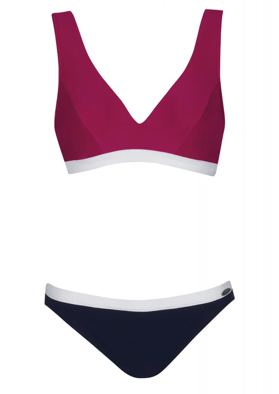 Ausdrucksstark! Nachtblau, Dunkelrot und Weiß als angesagtes Color-Blocking. Bikini mit Formbügel. Die Träger sind verstellbar. Hüfthose mit schmaler Seitenhöhe. Nachhaltig: Artikel aus recyceltem Material.