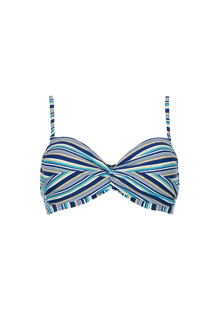Es ist ganz einfach: Blaue, weiße, türkise und hellbraune Streifen in unterschiedlichen Stärken – so entsteht ein unkompliziertes, frisches Design. Bikini-Top mit Formbügel und schönem Twist-Detail zwischen den Cups. Die eingearbeitete Futterstütze sorgt für einen angenehmen Halt und ein gutes Körpergefühl. Die Träger sind in der Länge verstellbar. Nachhaltige Bademode: OLYMPIA® GOES NEXT LEVEL – das Polyamid für den Oberstoff ist zu 100 % aus recycelten Fasern.